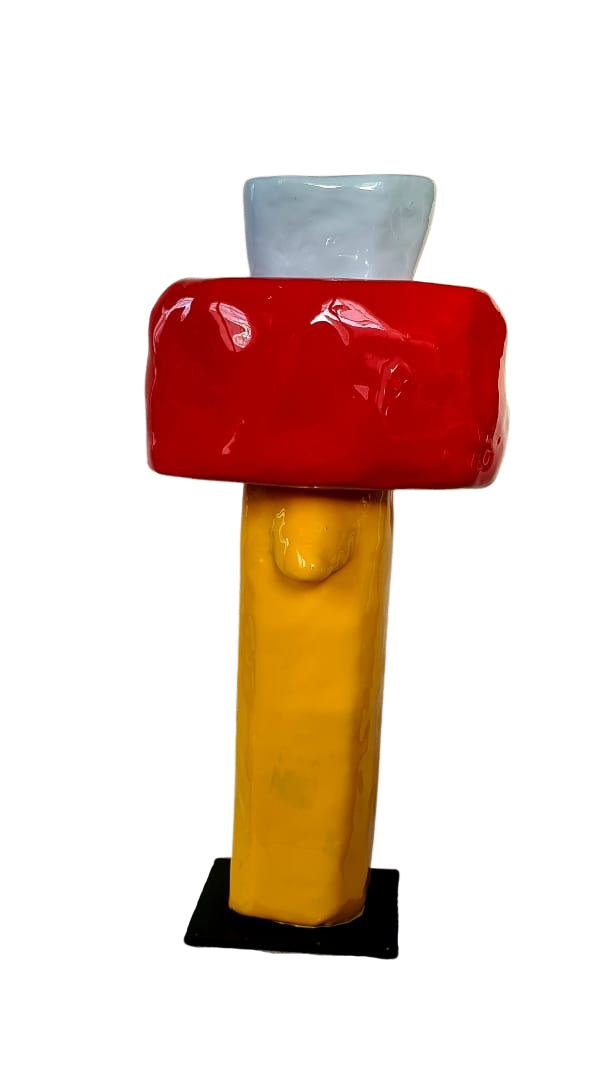 Multidisciplinary, he apprehends different materials and different supports such as resin, inclusion, concrete, wood, neon, oil and acrylic painting. He sculpts and paints everything that concerns him.