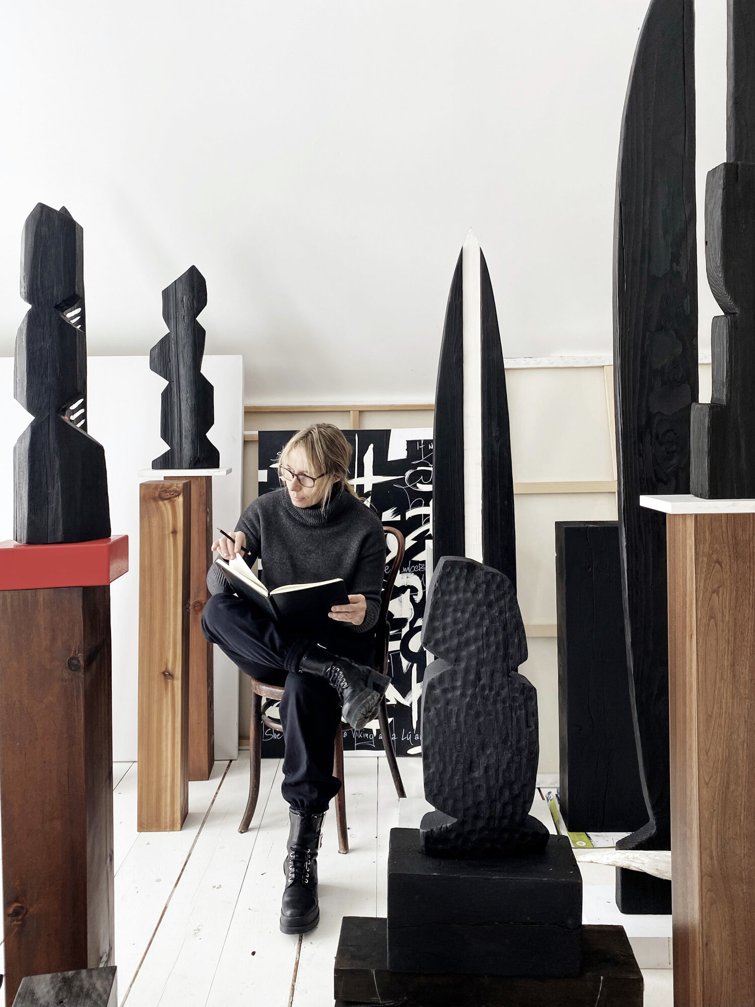 Neshka’s latest 3D work is in large scale sculptures made of charred Cedar wood. The sculptures are made of driftwood collected on the West Coast of Canada. Although minimalist in design, the sculptures have been described as having a formidable, thought-provoking presence.