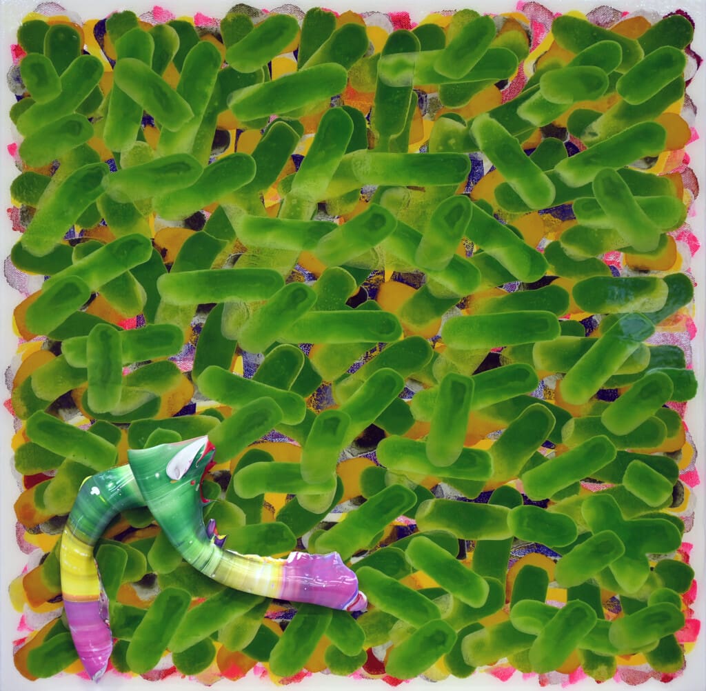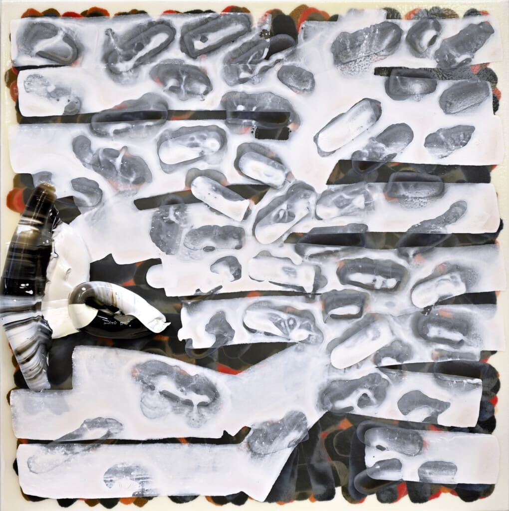 As a painter I believe that content is negotiated through process and my studio practice is experimental and process driven. I am interested in the physicality or, what I term the geomorphology of paint and how it becomes a surrogate for other forms of matter and their respective meanings. This view filters my creative research through a systematic lens relating to observational experiments assessing the physical and chemical properties of marks I make in relation to a pluralistic range of concepts. Importantly, my interest in geomorphology is aided by my understanding of hydrology and remote imaging. These have influenced an order of physical governance in my painting practice that reveals a topographical or aerial perspective using geological references and employing specific painting techniques that mimic environmental forces.