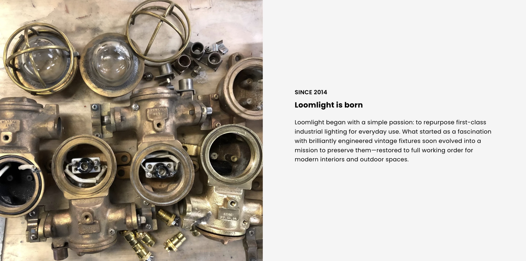 Loomlight is a specialist in reclaimed vintage and industrial lighting, clocks and binoculars. Each piece is carefully restored and rewired in-house. With fixtures dating from the 1940s to the 1990s, Loomlight preserves the character and durability of original design while ensuring every item is suitable for modern interiors. Loomlight sources everything from decorative European glass chandeliers and Art Deco pendants to industrial wall lights and large military searchlights. Alongside reclaimed pieces, Loomlight also designs and manufactures new industrial-style lighting and undertakes bespoke manufacturing projects for residential and commercial clients